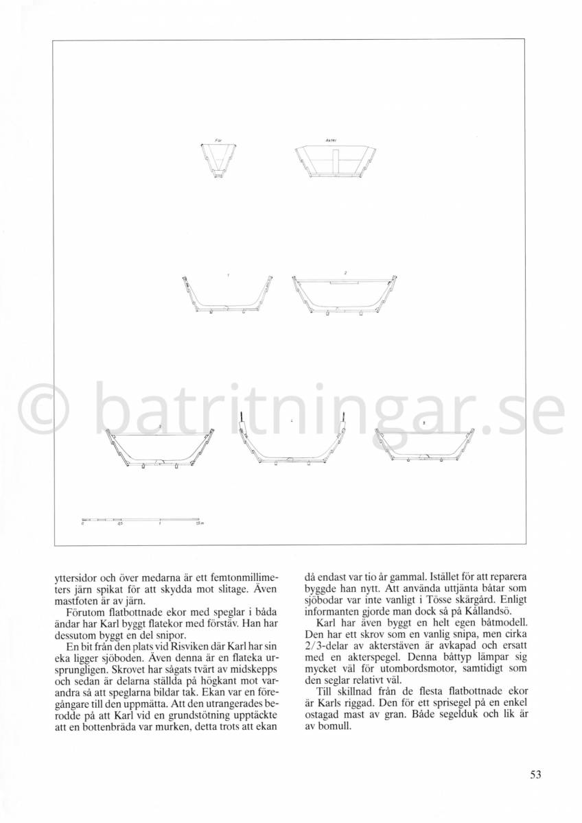 The measuring is done from existing boats that are traditionally built. Some are still in use, some are stored in different museums and some are left as wrecks in different places. Some of these wrecks have more or less fallen to pieces, but are reconstructed at the plan. Several boats are gone and does not exist any more.