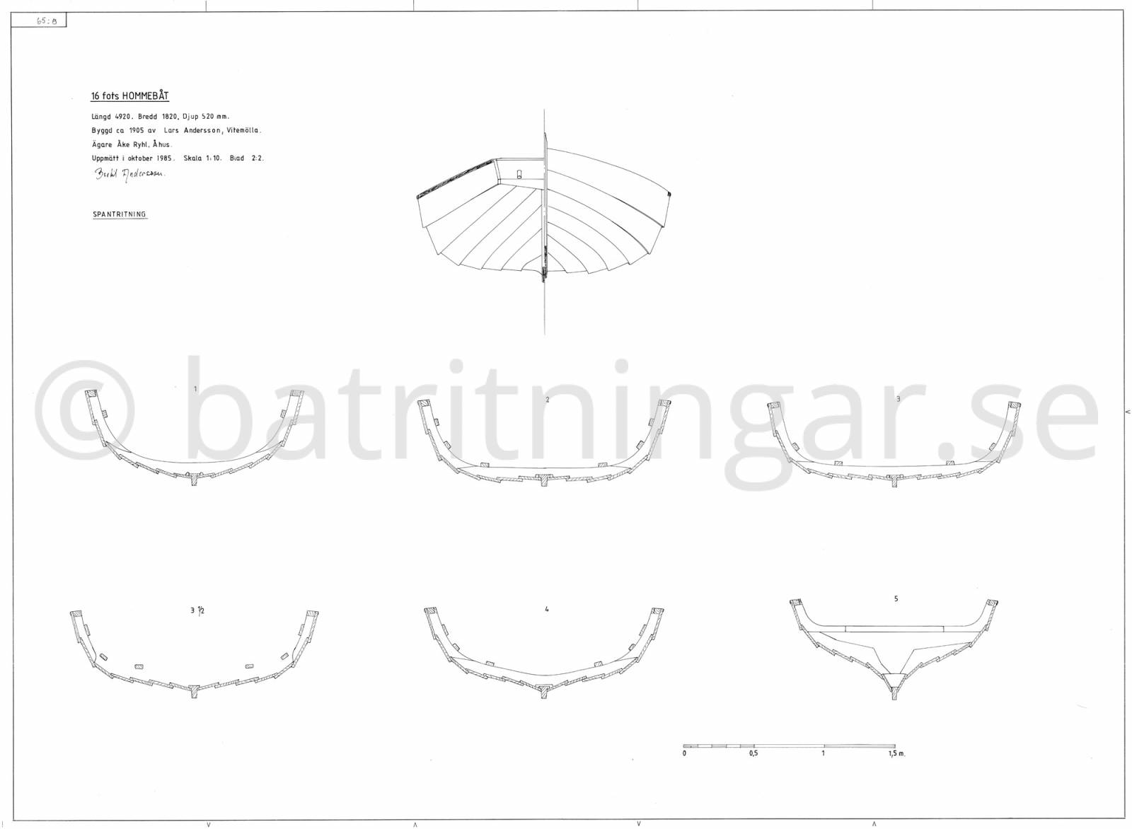 The measuring is done from existing boats that are traditionally built. Some are still in use, some are stored in different museums and some are left as wrecks in different places. Some of these wrecks have more or less fallen to pieces, but are reconstructed at the plan. Several boats are gone and does not exist any more.