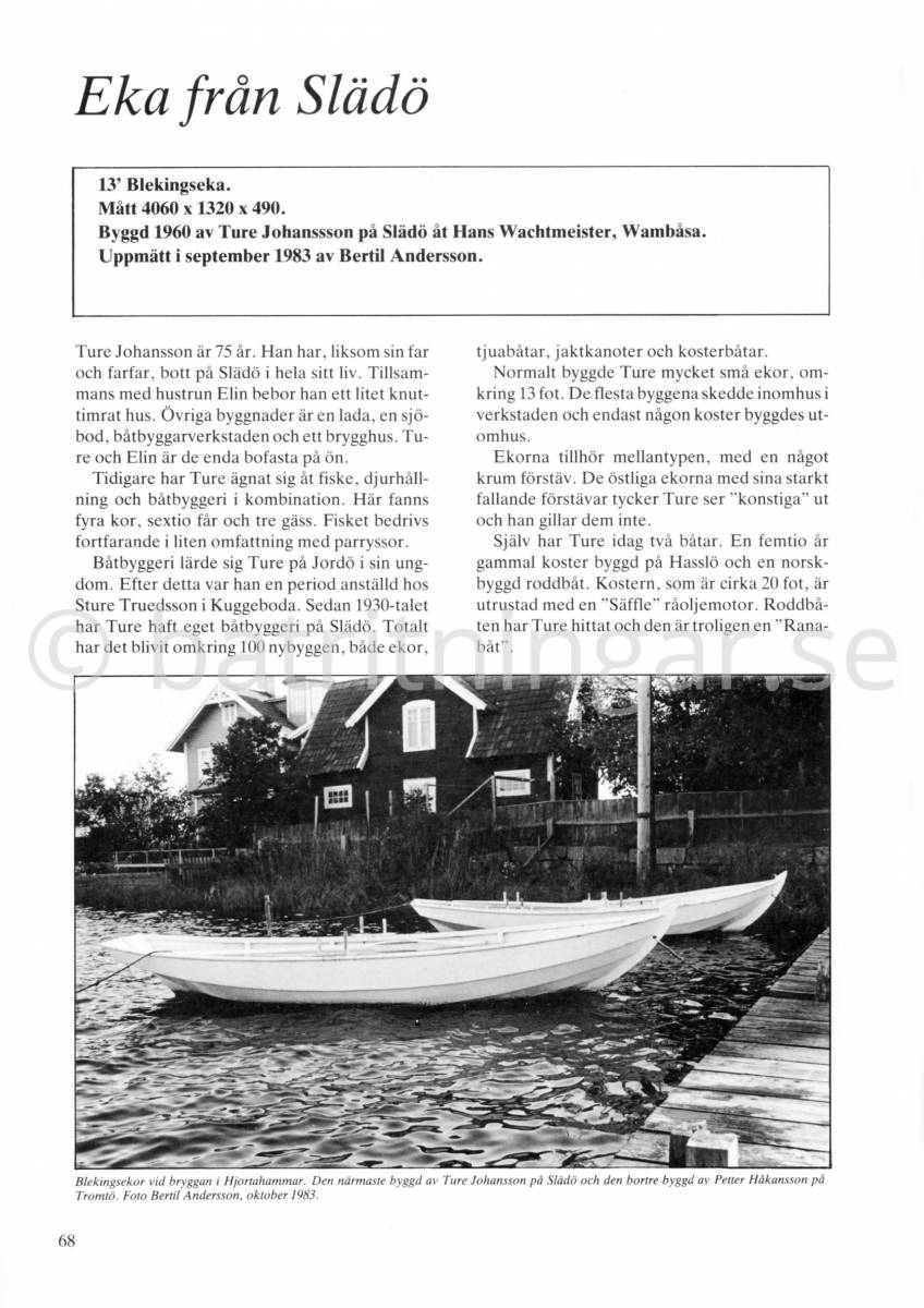 Byggd 1960 av Ture Johansson på Slädö, Blekinge. Helt i ek.
