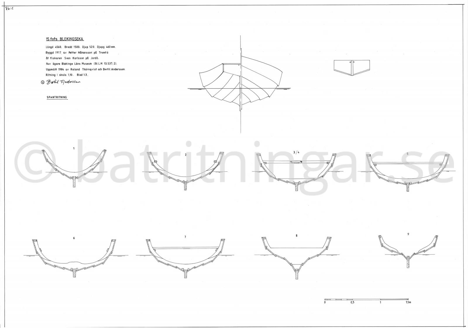 Uppmätningarna är gjorda från befintliga båtar som är traditionellt byggda. En del är fortfarande i bruk, några förvaras på olika museer och några finns kvar som vrak på olika platser. En del av dessa vrak är mer eller mindre sönderfallna, men är rekonstruerade på ritningen. Flera båtar är borta och finns inte mera.