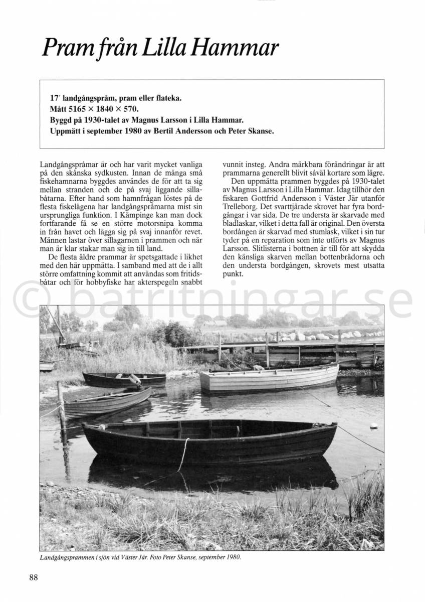 Uppmätningarna är gjorda från befintliga båtar som är traditionellt byggda. En del är fortfarande i bruk, några förvaras på olika museer och några finns kvar som vrak på olika platser. En del av dessa vrak är mer eller mindre sönderfallna, men är rekonstruerade på ritningen. Flera båtar är borta och finns inte mera.