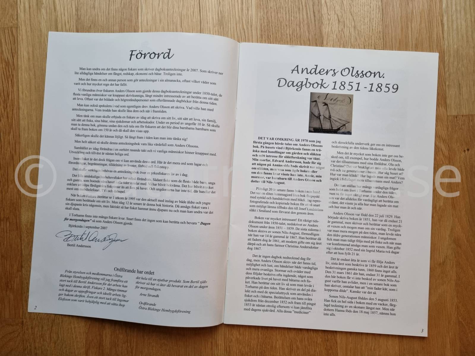 Dagboksanteckningar av Anders Olsson. En fiskare i Torhamn berättar mycket levande om sitt liv på 1850-talet. 36 sidor, i färg, rikt illustrerad med teckningar av Anders Olsson. Av Bertil Andersson.
